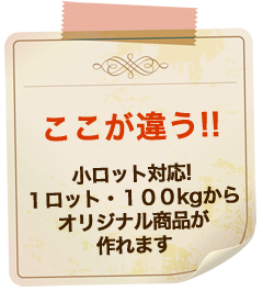 1ロット・100kg以上ご注文いただければ大丈夫。