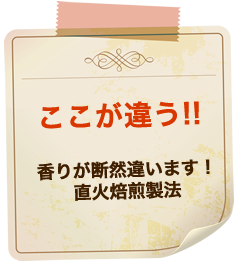 ロークス本舗は創業時から直火焙煎にこだわり、製造しております。