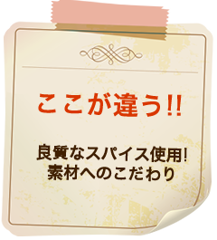 ロークス本舗では、原材料から吟味し厳選された良質なスパイスをブレンドし、長年培われた製法でじっくりと作り上げております。